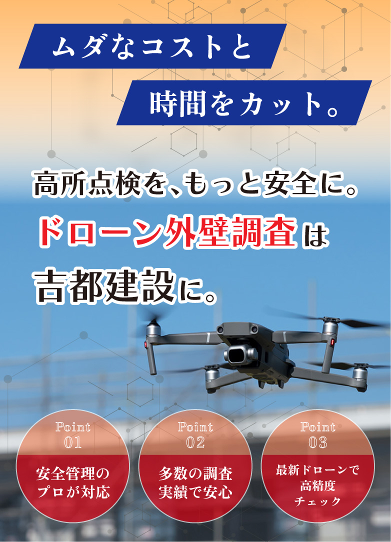 赤外線外壁調査は国に認められた技術ですが、国家資格ではありません。そのため、パイロットの技術が調査の精度を左右します。当社ではベテランパイロットが安全第一・高品質な飛行をお約束します。